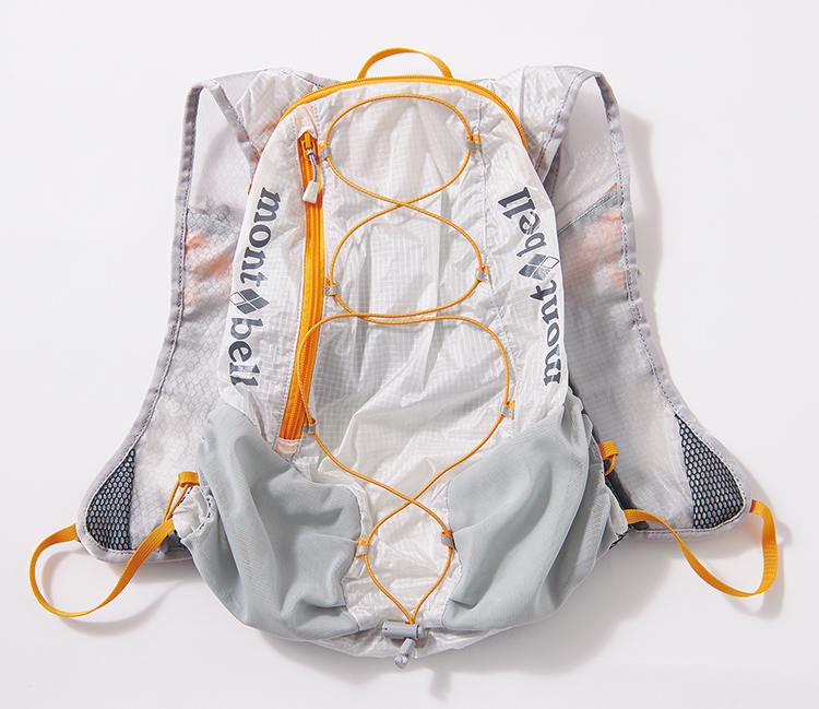 7200円/モンベル(モンベル・カスタマー・サービス 06-6536-5740)安心して走れる極上のフィット感! さまざまなアイテムを携行するトレイルランに欠かせないのがバックパック。フィット感が高く、カラダへの負担が少ない軽量なものを選びたい。こちらは319gと軽く耐久性も抜群。