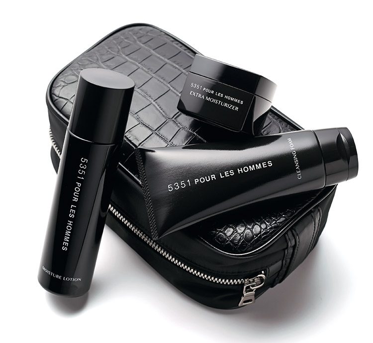 洗顔料「クレンジングフォーム」(150g 1800円)、化粧水「モイスチャーローション」(180㎖ 2500円)、クリーム「エクストラモイスチャライザー」(50g 3000円)の3品にポーチが付いた発売記念限定セット。1万5000円/5351 プール・オム代官山店 03-3461-1009ご存じ、ファッションブランドの「5351 プール・オム」が、なんとコスメをリリースした。しかも、かなりの本格派。洗顔、化粧水、クリームという基本の3ステップが揃うスキンケアアイテムには、皮脂を抑制するハト麦エキス、シワやたるみの原因となるコラーゲンの糖化を防ぐアメリオックス、血流を促進して引き締め効果を促すコロイド性ダイヤモンドといった、こだわりの成分がてんこ盛り。テカリや乾燥に加え、老け顔も気になり始めたオッサンの悩みに正面から応えてくれるのだ。もちろん、男好みの使用感にも徹底的にこだわっており、パッケージもご覧のとおりのクールな仕上がり。しかも今なら、3品に特製ポーチが付いた限定セットが登場中。メンズコスメの新たな定番になりそうな予感!