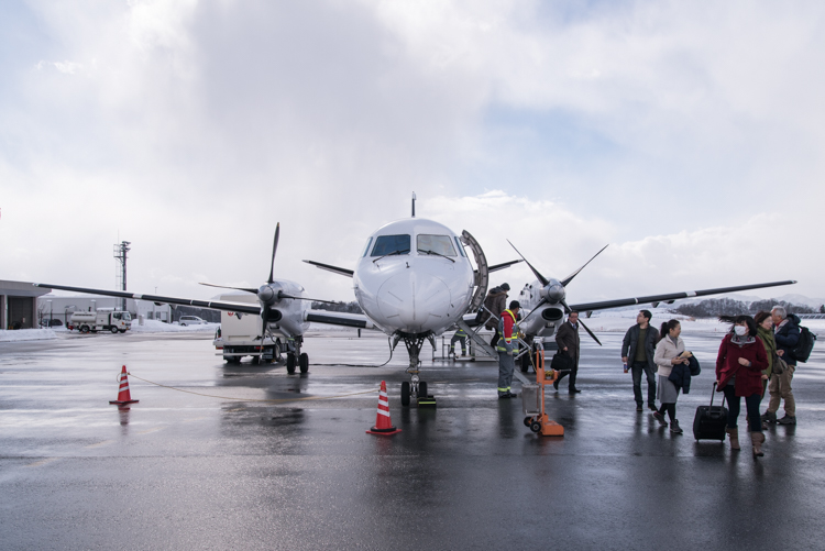また、大阪~豊岡の小型プロペラ機は、これから非日常に向かうという、電車ともジャンボジェット機とも違う冒険心を掻き立ててくれる。この間は約30分のショートフライト。でも着陸した豊岡は一面の雪景色。ここが兵庫? まるで別世界!