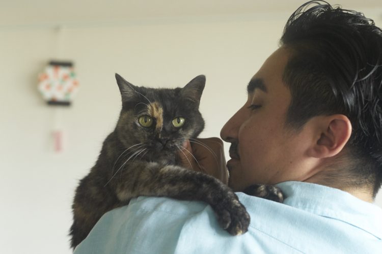 「人生の先輩 ネコ」だけあって、悟りすら感じる視線をカメラにくれたナナ。すべてを見透かしていそうな目にはドキッとするものがあった。そんな彼女も、石井の腕のなかでは、親に甘える子どものように安心しきっていたのが印象的だ。