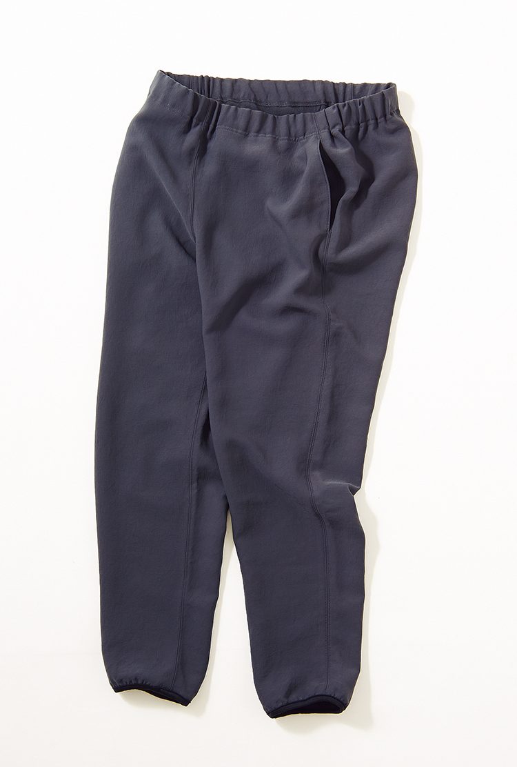 ポイントは2重織りの裏地のシボ感で、肌に当たる面積を最小限に抑えるうえに、速乾性を備えている。きれいなドレープを生むゆとりあるシルエットもまた、ベタつき解消に貢献。機能、見た目ともにしっかりとユーザーの要望にリーチしてくるあたり、さすがである。