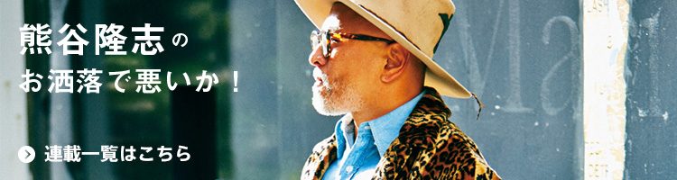 スタイリストとしてだけでなくさまざまな分野で活躍し、オーシャンズ世代の先頭を突っ走るアニキ・熊谷隆志さん。彼が今、足しげく通っている場所がある。それが福岡。ハマったワケを聞いて思わず納得。すぐにでも行きたくなった。
