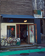古着好きを唸らせるツウなアイテムがぎっしり。実はここ、熊谷さんがなんとなしにフラッと立ち寄ったお店で、「なぜか店長とウエスタンの話で意気投合。それ以来、よく通っている」という運命的なお店。リメイクアイテムの発想もユニークで、デジタル迷彩柄の法被は傑作だ。