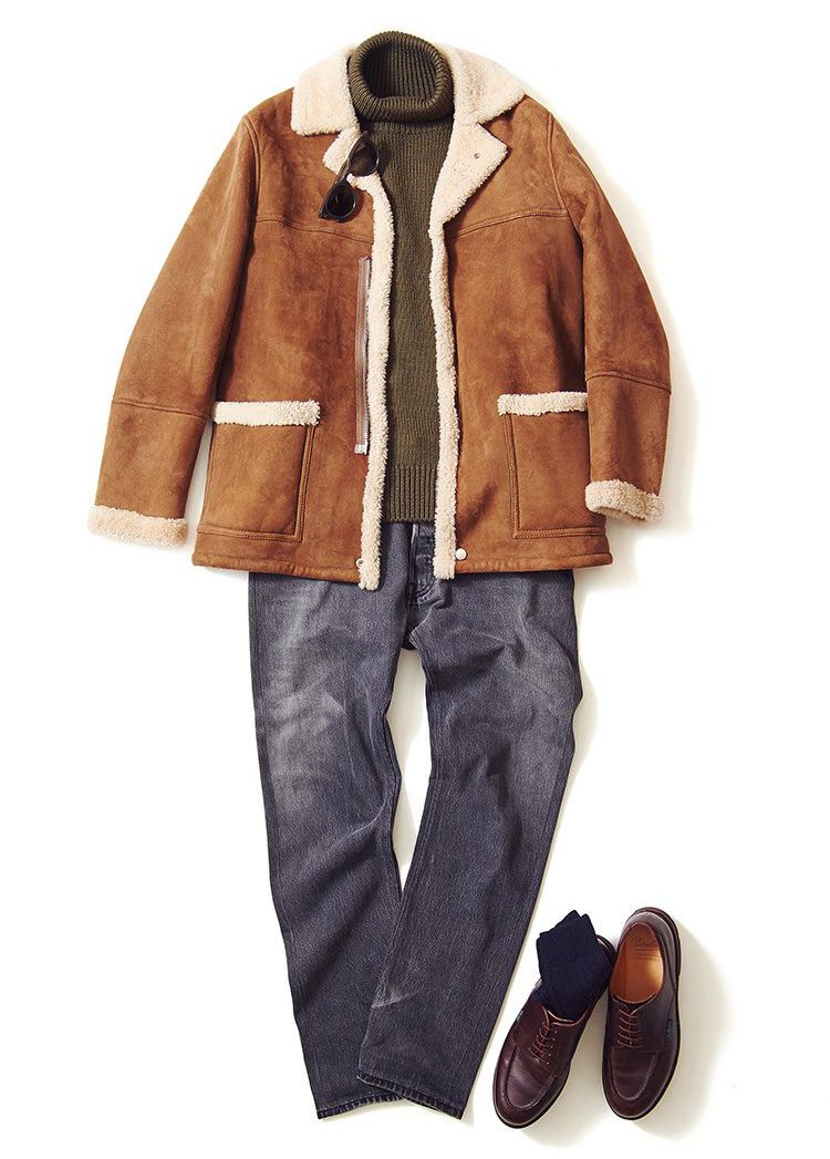 「ブライトリング」+ムートンジャケットのアメカジスタイル