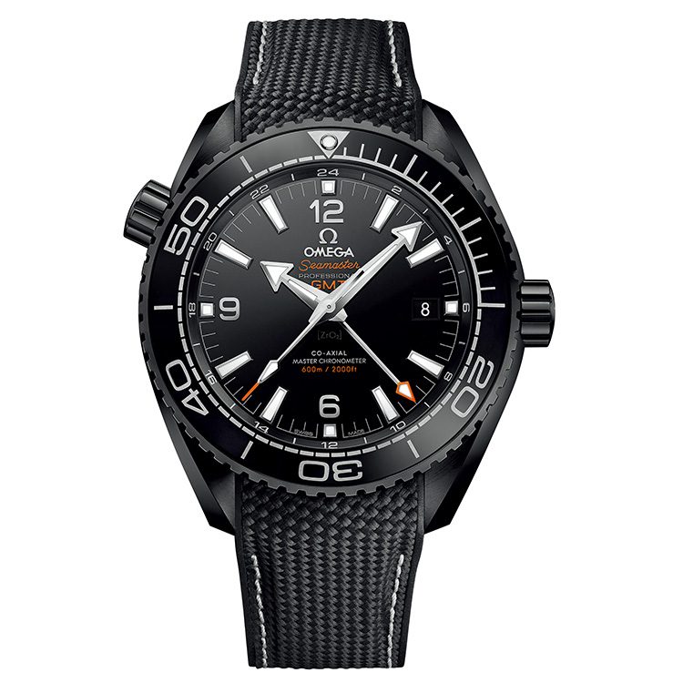 「オメガ」のシーマスター プラネットオーシャン ディープブラックセラミックスケース、45.5㎜径、自動巻き。125万円/オメガ 03-5952-4400