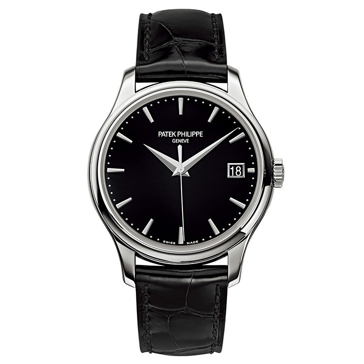 K18WGケース、39㎜径、自動巻き。390万円/パテック フィリップ ジャパン 03-3255-8109 漆黒の文字盤にシンプルな3針とデイト表示が浮かび上がる。削ぎ落とした印象のフェイスに対し、裏蓋は開閉するオフィサー仕様。存在を感じさせないインビジブルヒンジはケースのコンプリケーションと呼ぶに相応しく、クラシックなスタイルとともに、ムーブメントを守り、世代を超えて愛用できる。