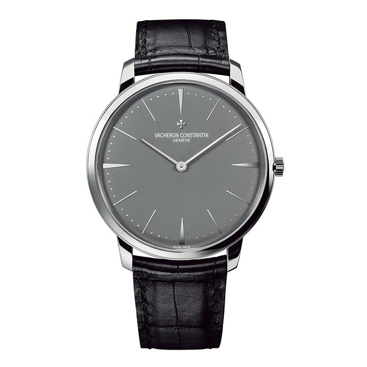 Ptケース、40㎜径、手巻き。317万5000円/ヴァシュロン・コンスタンタン 0120-63-1755 時分針のみという究極のシンプルさでドレスウォッチとしての魅力を最大限に享受。一方で、グレーの文字盤はカジュアルな装いにも合う。プラチナケースは手に取ればずっしりと重く、存在感に溢れる。仕上げの美しいムーブメントは品質も圧巻で、ジュネーブシールを取得。