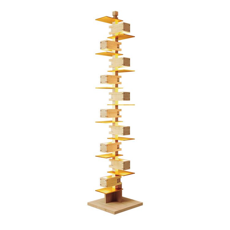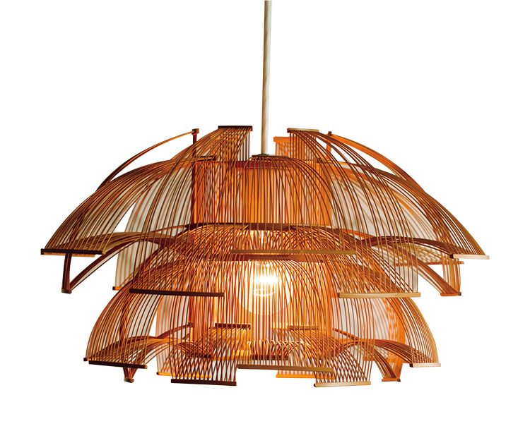 光と影の演出に長けた照明作家の意欲作「HOKORE」は竹ひごを巧みに用いた逸品。電気を消しても部屋の“華”となり、つければ陰影がもたらすその世界に驚くはず。