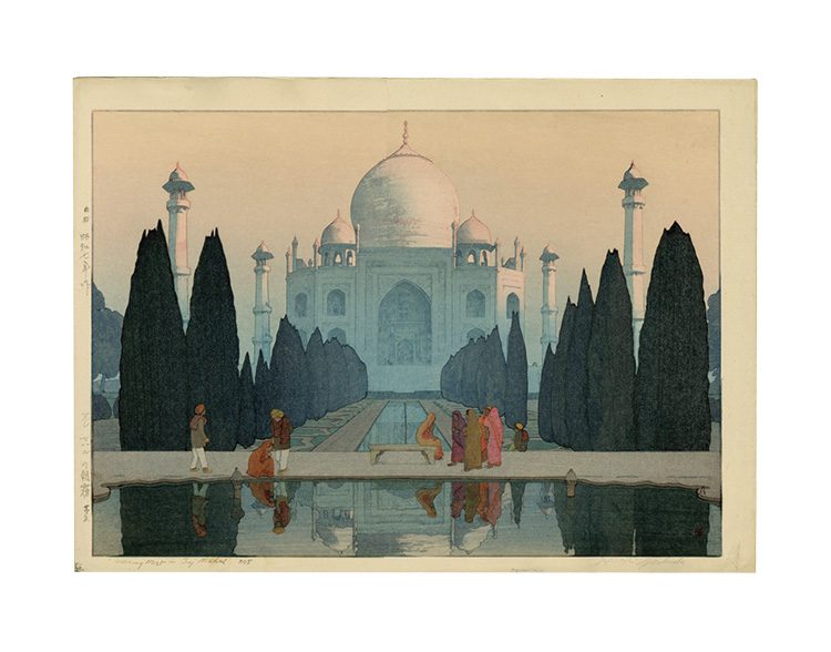 日本の版画家、吉田博の叙情溢れるタージマハル(上)か。もしくはレタードの名作ポスター(下)か。名だたるアート1枚で、部屋のムードは引き締まる。