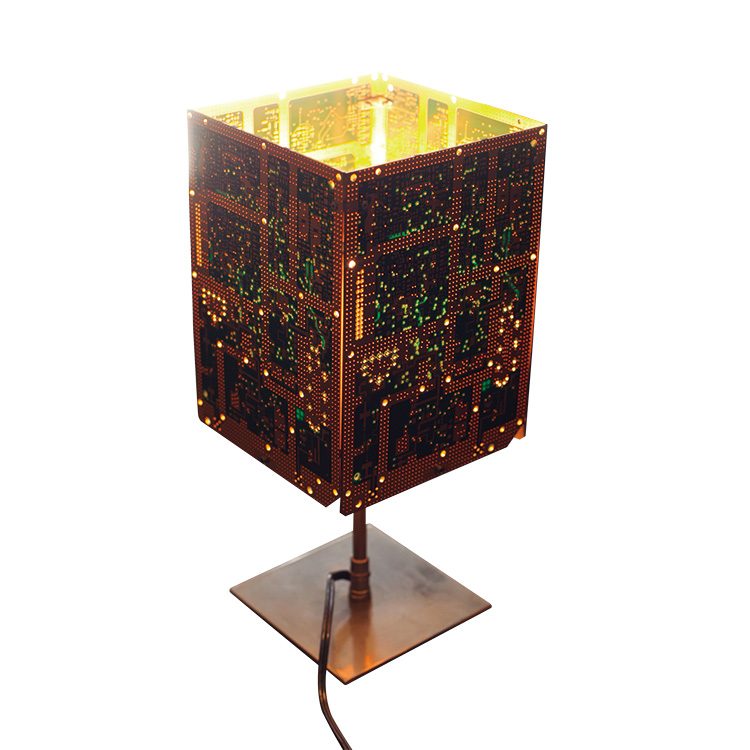 フランス人デザイナー、リュック・ゲンソーレン作の照明はコンピュータの基盤をイメージしたデザインが男心をくすぐる。明かりの漏れ方にSFのような世界観を感じはしまいか。