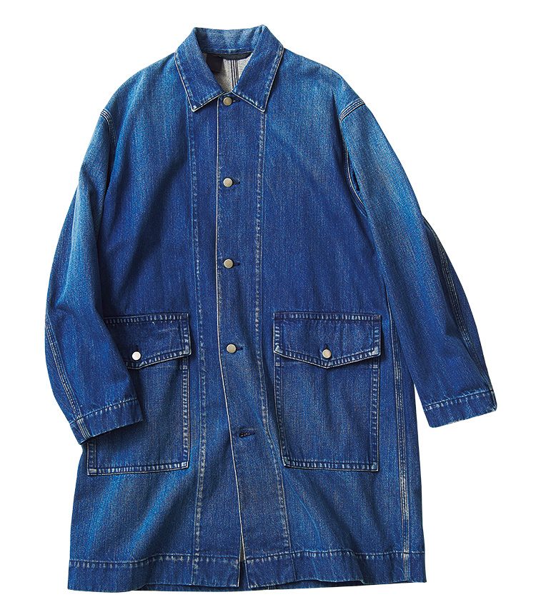 6万5000円/マッキントッシュ青山店 ︎03-6418-5711薄手のリジッドデニムを使用したステンカラーコートは、オン・オフ使える万能選手。チンストラップ付きでスタンドカラーにもなる。