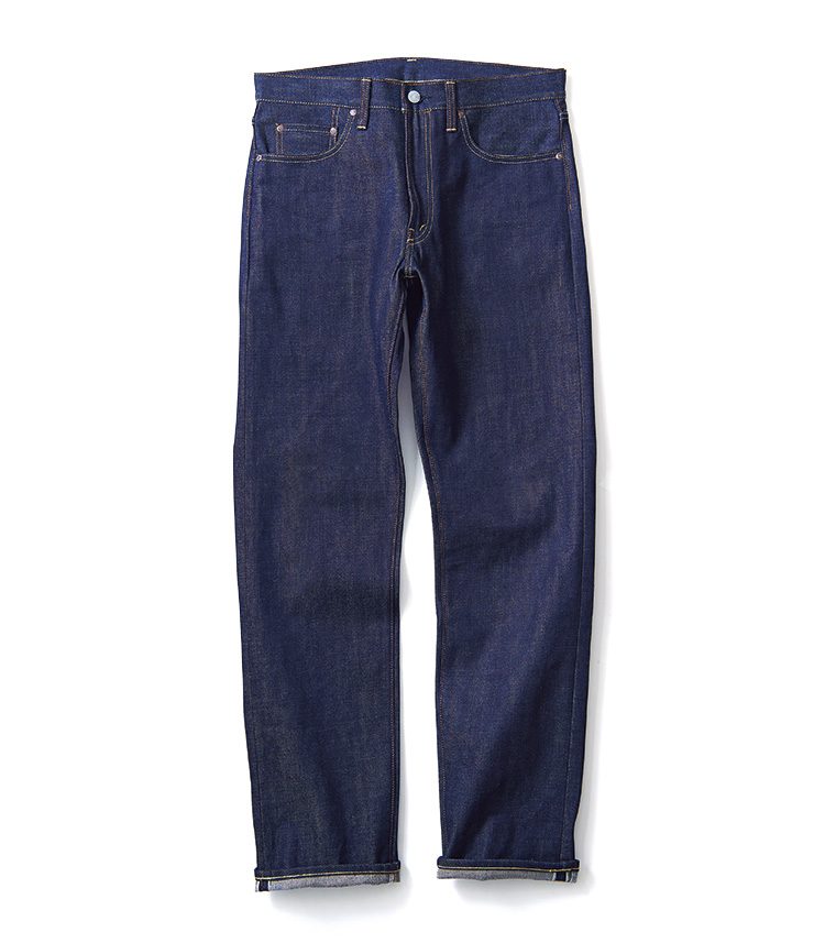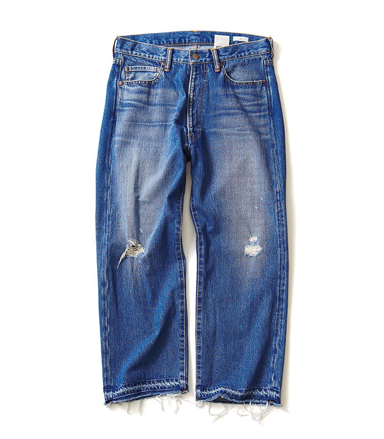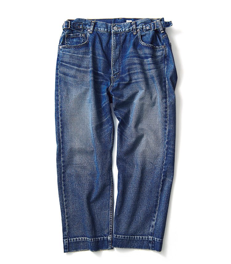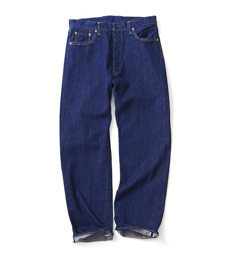 服オタクの間で話題沸騰中の、松島紳氏が手掛けるカンタータ。501的な王道シルエットなのに、コンパクトなお尻。ボタンはトラウザーズ用の水牛ボタン。ドレスパンツとしてデニムをはいてほしい……というデザイナーの確固たる主張が垣間見える1本だ。