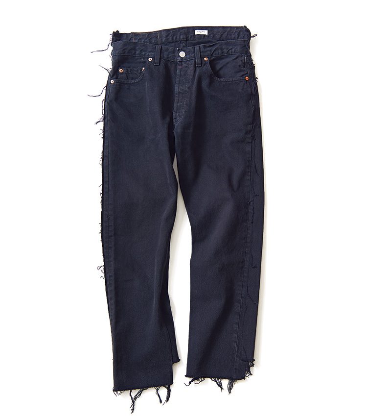 1万4000円/ヘムト PR 03-6721-0882前後左右をずらして2つのユーズドジーンズを縫い合わせる。ただそれだけのことなのに、オールドパークのリメイクは強烈にセンスがいい。