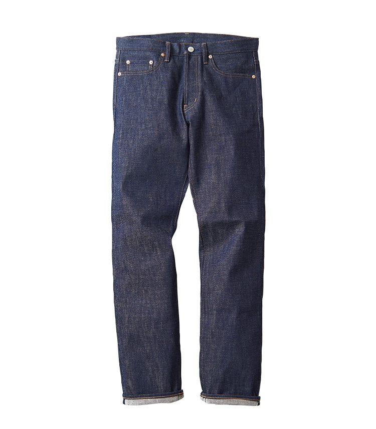 2万2500円/リッチフィールド info@richfield-jpn.comクセのない匿名的なデザインが仕事にも使いやすい。旧式織機で織られた岡山県産セルビッジデニムを使用し、トップボタンやカッパーリベット、レザーパッチなど、デニムの王道を行く存在感。