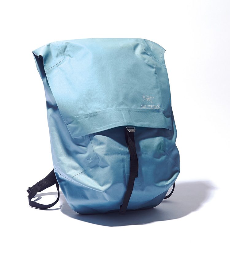 H50.7×W30.7×D14.5cm 2万5000円/アークテリクス ︎03-6631-0833カナダ、バンクーバーにある大通りの名にちなんだ「グランヴィル バックパック」は、自転車で移動する都会のコミューターをイメージしている。耐水性と強度の高い高密度ナイロン、「N400p-AC²」を採用しているのも、雨が多いその土地柄を意識してのことだ。
