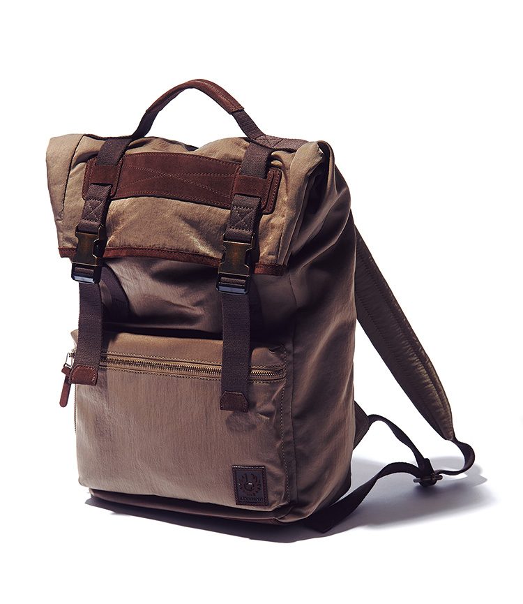 H40×W29×D13cm 7万500円/ベルスタッフ 銀座ストア 03-6263-9978“パリダカ”にインスパイアされた今季を象徴する、レトロなウォッシュドナイロン素材の「フィールドウェイバックパック」。軽くて耐久性にも優れており、昔ながらの山岳用バッグを思わせるデザインにぴったりマッチしている。