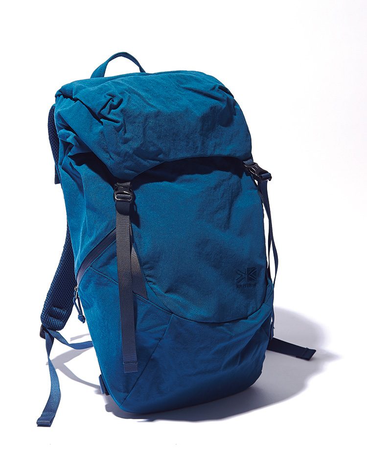 H57×W27×D23cm 1万5000円/カリマー ジャパン 03-3221-6883ゴワゴワ硬くて、いかにも武骨な素材「ライノクロス」。そのネーミングはサイの皮膚のような生地を意味しているのだそう。分厚いナイロンに特殊な加工とワックスコーティングを施した独自のもので、経年変化も楽しめるのもポイントだ。
