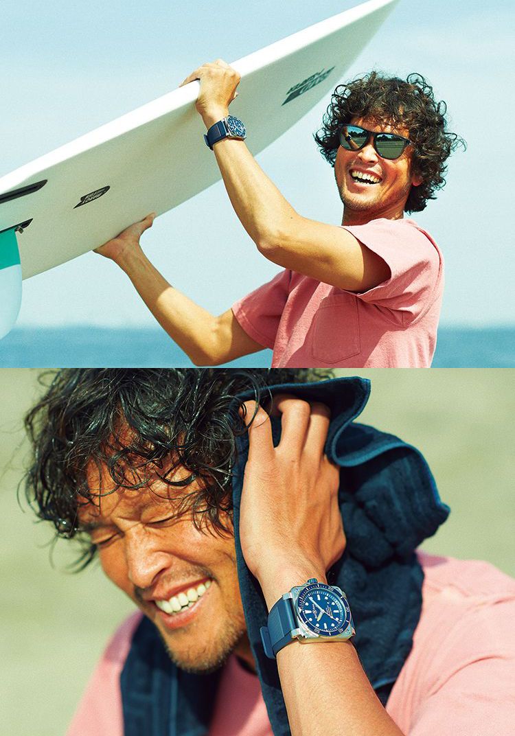 新作ではさらにスタイリッシュなタイムピースとして、その存在感を増している。まるでネイビーはジーンズを、ブロンズは潜水具を思わせ、いずれも使い込むほどに魅力を増し、愛着が湧いてくる。僕らのライフスタイルにいつも海があるように、その腕元にしっかりと寄り添うのだ。