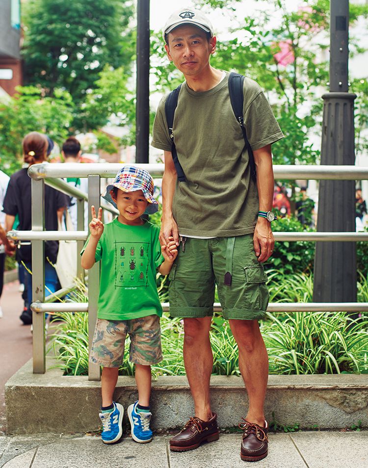 キーワードは「グリーンのある着こなし」。好きな色、似合う色を見つけて、ワードローブをそこに収れんさせていくと、コーディネイトがうまくなる。息子の颯汰くんにも継承されてますね。