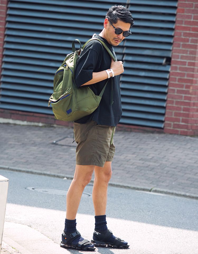 トレンド性の高いアイテムとハイエンド&ラグジュアリー系のもので全身をまとめながら、微塵もイヤミがなくまとまりがいいのは、黒とオリーブカラーで合わせたから。