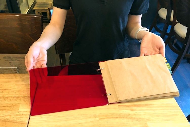 メニューを綴じているアクリル板も実家の製品。高校卒業後は薬学部に進学したが、本人いわく「バカすぎてついていけなくなった」ため中退。映画館や結婚式場のアルバイトを経て、3年ほど前に上京した。