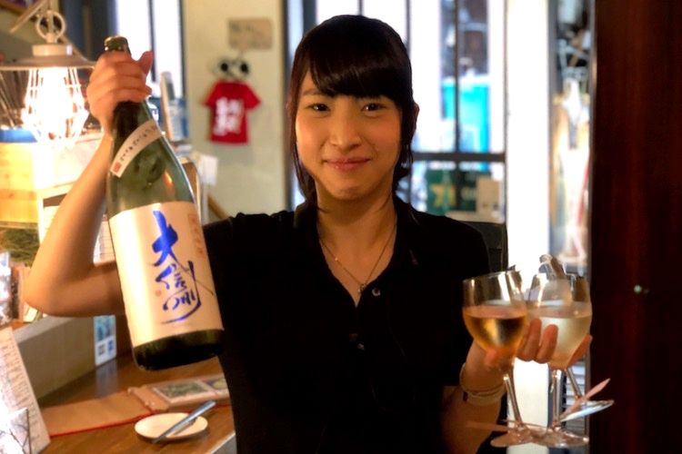 数分後、グラス3つと一升瓶を両手に持った彼女がやってきた。