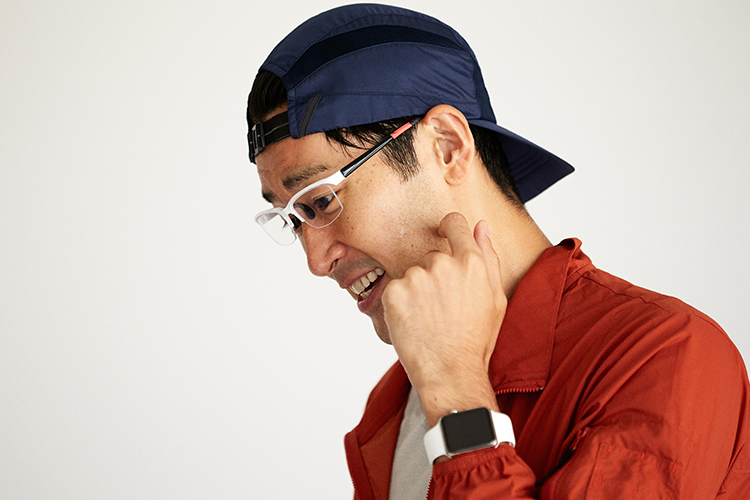 メガネ●ゾフ スマート スポーティシリーズ「ZZJ181036-10E1」 9000円/ゾフ 0120-013-883、ジャケット1万900円、Tシャツ5500円、キャップ3800円/すべてチャンピオン(ヘインズブランズ ジャパン 0120-456-042)男は「○○専用」という言葉に弱い生物。ひとつの目的のために考えられた機能や見ために気分はアガり、ほかに変え難い「使う楽しさ」を知る。