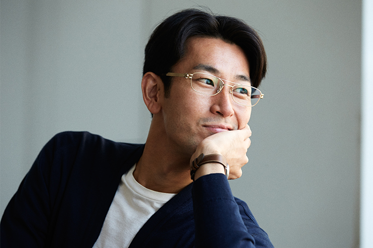 天地幅を抑えたスクエアシェイプは洗練された印象で、枯れ感の出てきたオーシャンズ世代の目元をイエローゴールドが程良くセクシーに彩ってくれる。また、バネ丁番が顔をホールドしてストレスフリーな掛け心地、というのもうれしいのだ。