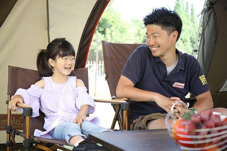 「ひと通りリフレッシュしたら、いよいよテントやタープを設営します。このときのポイントは、親だけで設営しないこと。ただし、頭ごなしに教えるのではありません。ペグ打ちを任せたり、一緒にテントの向きを考えたり……一つひとつの作業が、キャンプの遊びの一部なんです」。