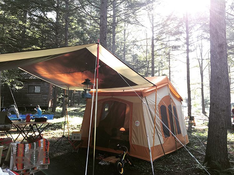 どこからか頰を撫でる風と、木々のざわめき。すっきりとした寝覚めを、朝の日差しが出迎える。「この朝が最高なんです」と山中さん。もしかしたらキャンプのハイライトは、この時間かもしれない。
