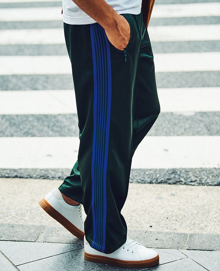 太い側章に好配色。トラックパンツをファッションアイテムとしていち早く取り入れたのがニードルズだ。四の五の言わずに、まずはこちらを。シルエットはストレートとナローの2種類。モデルが着用したのはストレートタイプだ。