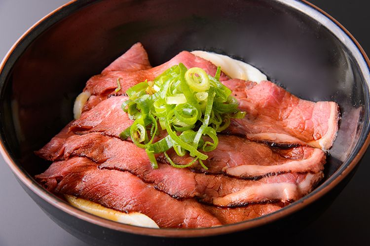 「伊勢うどんローストビーフ添え」1200円。もちもち食感の伊勢うどんにローストビーフを贅沢に使用した一品。イベント期間中はグルメも注目で、松阪牛や三重豚、地元の新鮮な野菜を活かしたうどんやラーメン、ハンバーガー、カレーなどで手軽に味わえる。