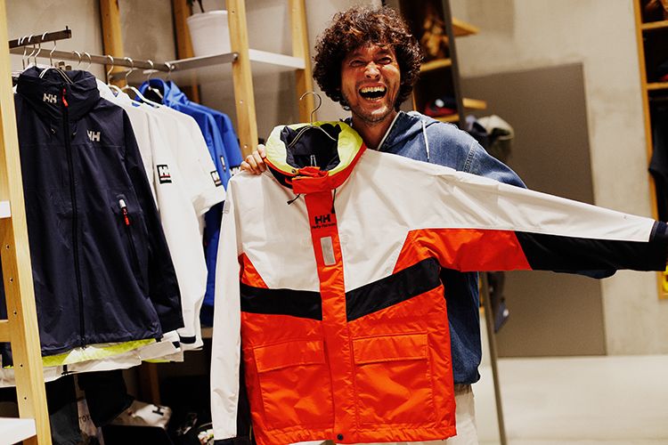 もともと海の男に愛されたヘリーハンセンのアイテムは、サーフィンを愛する湘南ローカルにも共感できる機能が多いという。シェルパーカを手に取ったマーシーによると、「色使いがツボ」。