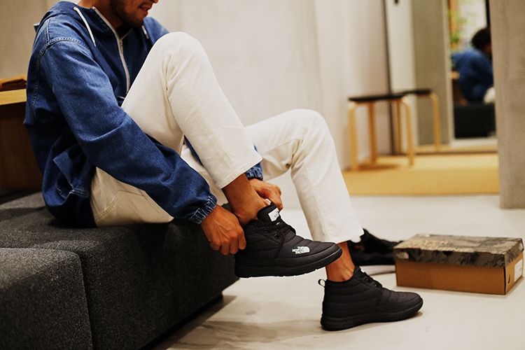 「海辺を歩くなら軽いスニーカーがいい」。そんなマーシーがチェックしたのは、ナイロンアッパーのミドルカットモデルの「ヌプシ トラクション ライト チャッカ ウィータープルーフⅢ」。撥水加工はもちろん、インサレーションには機能素材のプリマロフトを使っているから、保温性が高くて冬でも暖かい。