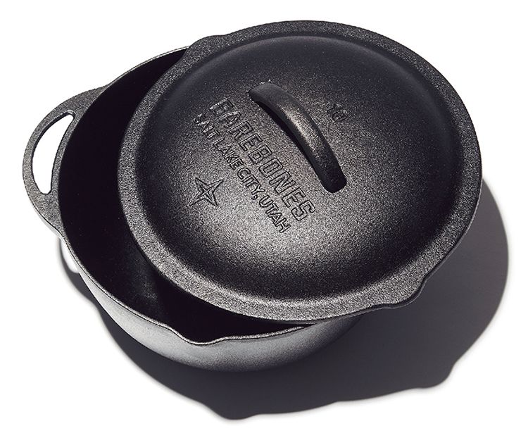 H16.1×径30.4cm 約3.8L 9000円/エイアンドエフ 03-3209-7575煮る、焼く、茹でる、蒸す、炊く、炒める、揚げるなど、あらゆる調理ができる万能鍋は、ワイルドなアウトドア料理に理想的だ。