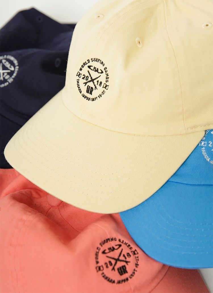 キャップ 2000円[会場限定]/アーバンリサーチ サニーレーベル ラスカ茅ヶ崎店 0467-53-7365大会のロゴが描かれたキャップやコーチジャケット、Tシャツやトートバッグなど全4種類のアイテムを展開。アーバンリサーチの一部ショップやオンラインショップ、会場で発売する予定だ。使いやすいブラックやブルーはもちろん、サーフィンで日焼けした肌に映えそうなイエローやピンクなど、ソフトな色合いにも注目だ。