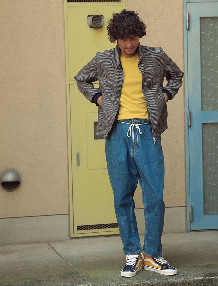デニム2万円/ユアセルフ(Name 03-6416-4860)、ジャケット6万3000円/コバート(ユナイテッドアローズ 六本木ヒルズ店 03-5772-5501)、Tシャツ1万5000円/ストーンアイランド 03-6271-4654、スニーカー1万500円/ヴァンズ(ピルグリム サーフ+サプライ 03-5459-1690)まずは今季より始動した新ブランド、ユアセルフは、“不自由な格好良さ”を掲げ、33インチと38インチの2サイズのデニムのみを展開。どのサイズをどう着るかは、あなた(yourself)次第というわけだ。