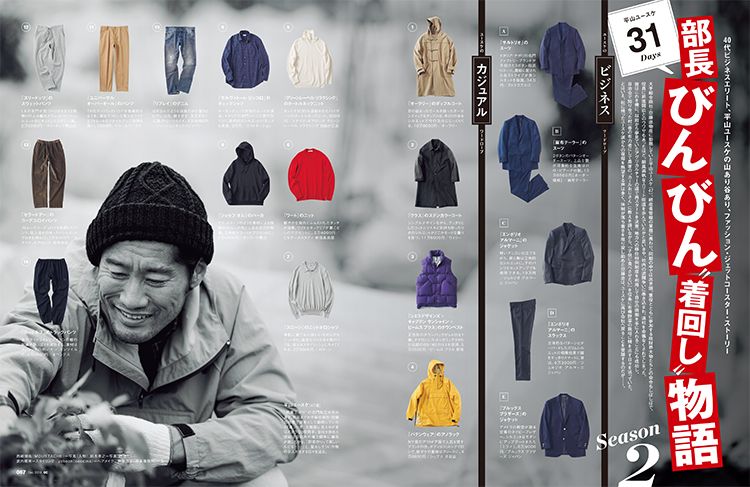 40代ビジネスエリート、平山ユースケの山あり谷あり、ファッション・ジェットコースター・ストーリー「部長びんびん“着回し”物語 Season 2」。計19のワードローブをどう着回すのか、見逃し厳禁だ!