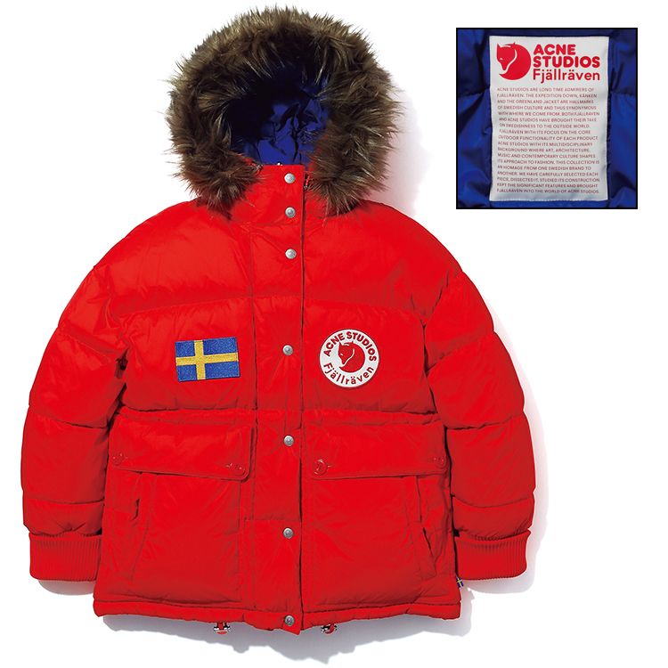 胸の国旗が示すとおり、ともにスウェーデンを母国とする、いわば「同郷コラボ」。キツネロゴがキュートなブランドだが、作りは本格派。アクネの差配によってリバーシブルに。