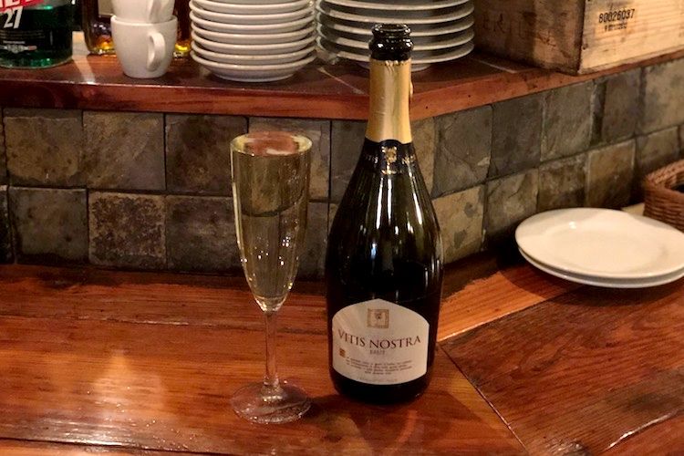 赤ワインに10日間漬け込んだ肉を10時間煮込む。店内では注文が入るたびに「グラッツェ!」という元気な声が上がる。ところで、駅構内に続いてこの店の入り口にもクリスマスツリーがあった。よく見ると、ワインのコルク栓で作られている。