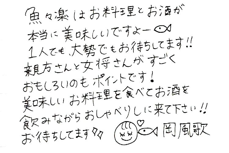 メッセージもやはり丁寧。【取材協力】 魚々楽(ととらく)住所:中野区中野5-56-11 白百合ビル2F電話番号:03-5380-3433
