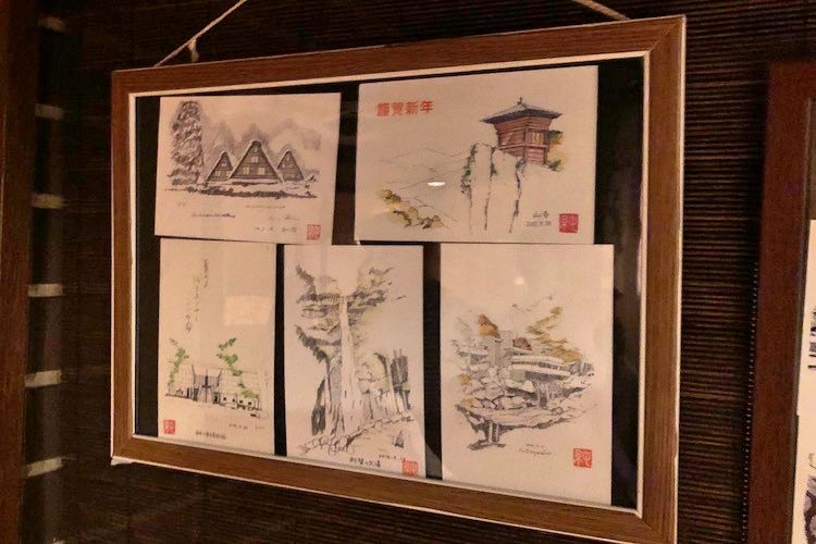 娘さんとは一緒にお笑いライブに行く仲。壁に飾られているスケッチが気になったので風歌さんに聞くと、「高田先生という建築家のお客さんの作品です。今、私の絵を描いていると言っていたから完成が楽しみ」。