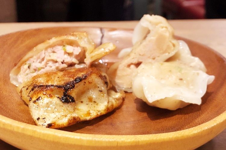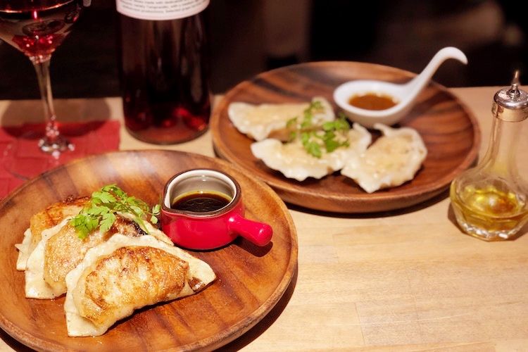 もっちりとした餃子の断面も蠱惑的。これがとんでもなく美味しかった。フルーティーなロゼワインにもよく合う。じつは、メディアの取材依頼がひっきりなしに来る超人気店だったのだ。