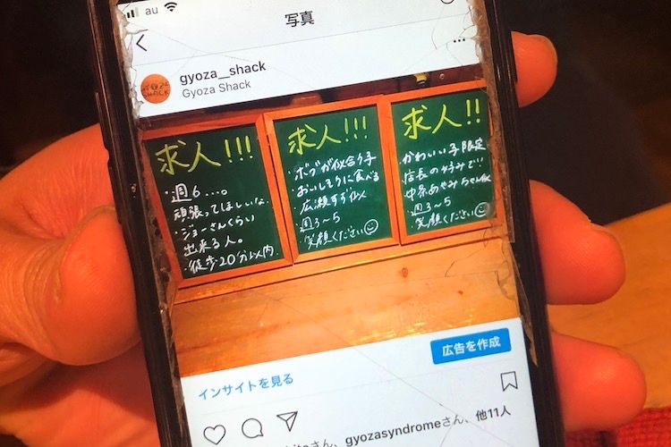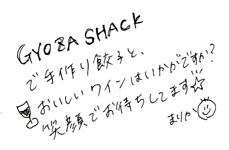 明るくて勢いがある字が斜め上に伸びる。 [取材協力] GYOZA SHACK(ギョウザシャック) 世田谷区三軒茶屋2-13-1003-6805-4665