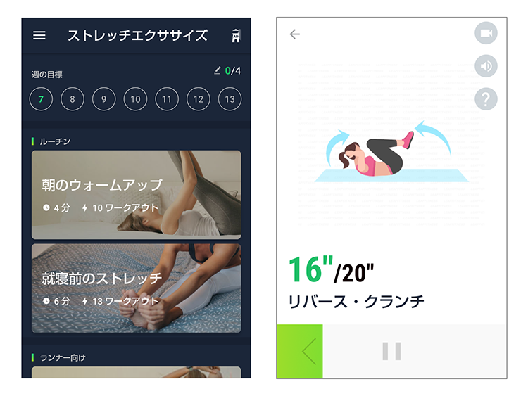 一口にストレッチといっても、筋トレに近いハードなメニューもあるので、組み合わせによっては、かなりの運動量になるはず。本格的なトレーニングに入る前に、ぜひ利用してほしいアプリのひとつといえ言えるだろう。