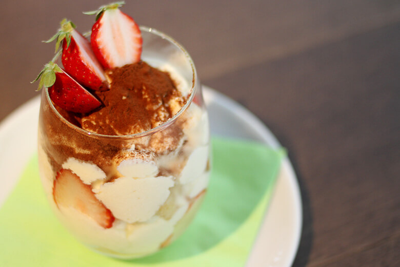 「ティラミス」(900円)は、今の季節はいちごとともに。季節によってメニューや使う食材は常に変わっていくという。ランチやディナーでも、地元産にこだわった食材からなるメニューは季節ごとに内容が変わり、買い物ついでと言わず食事目当てにも立ち寄りたい。