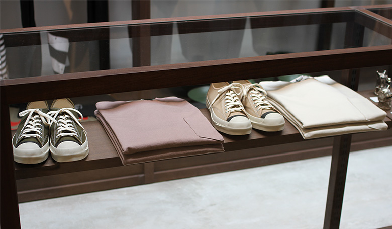 今回、ビオトープ フクオカ限定で作られたトーストフット&アイギアのスニーカーと、オーラリーのロングスリーブTシャツ。ビオトープ独自の目線でセレクトされたセンスの良いアイテムはもちろん、ビオトープ フクオカでは、1940年代や’70年代など、ともすれば博物館クラスのハイブランドのヴィンテージアイテムも取り扱えている。
