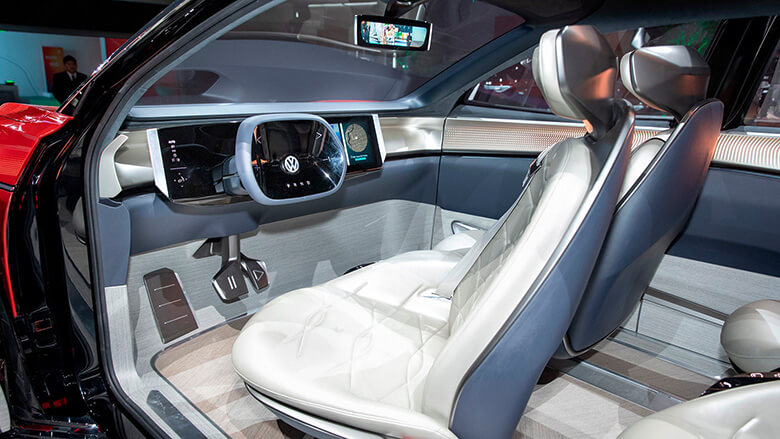 もちろん自動運転機能を装備し、移動中は後席の乗員と会話を楽しめるよう前席のシートが25度回転する。操作系のスイッチやディスプレイは運転席にコンパクトにまとめられ、車内はスッキリとしている。また中国市場を意識して、PM2.5などで汚れた外気を車内に取り込まないよう、空気清浄システムも搭載されている。