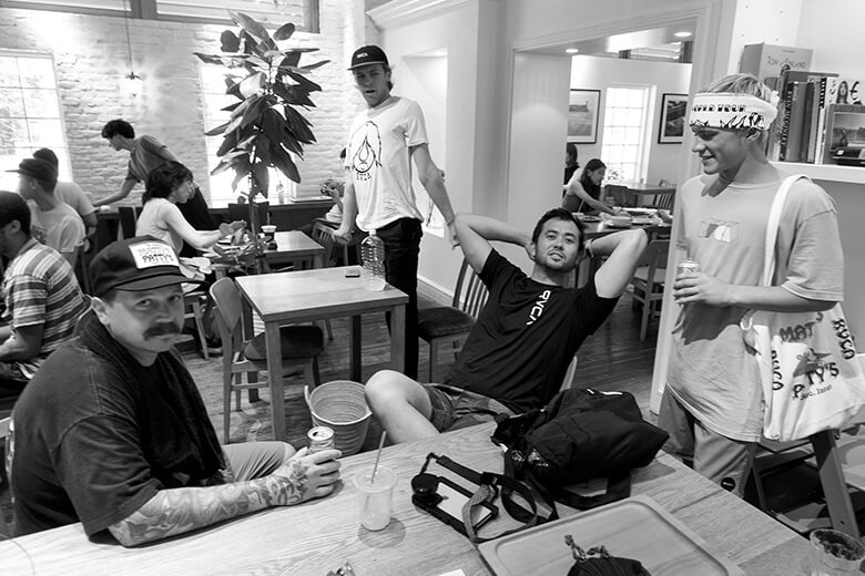 再び、RVCAゆかりのスケーターたち。チルしつつドローイングをしているケヴィンは個展を開催もしている。彼だけでなくRVCAのスケーターやサーファーの多くは各々が別の表現の場を持っていて、次なる“ビューティフル・ルーザーズ”を予感させる。