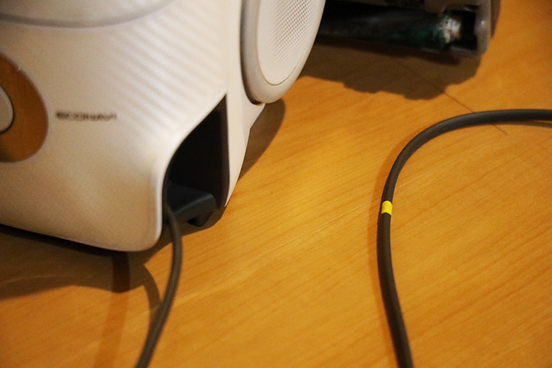 黄色いテープまで引き出さずに使うと、掃除機本体のなかで電源コードが発熱し、故障の原因となります。掃除機を大切に使うためには、どんなに近くの場所を掃除する場合でも黄色いテープが貼られている位置までは電源コードを引き出しましょう。